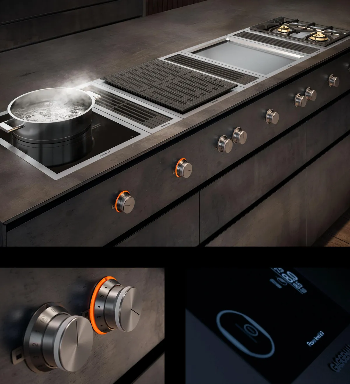 Modüler seçeneklerimizi ve havalandırma cihazlarımızı sorunsuz bir şekilde birlikte kullanarak pişirme alanınızı aklınızdaki ideal mutfağa göre özelleştirin. Mutfak mobilyalarının alnına monte edilebilen aydınlatmalı paslanmaz çelik düğmeler tarafından kontrol edilen bu ürün, hırslı ve tarz sahibi mutfaklarda en üst düzey başarıyı temsil eder. Kumandaları ve renklerini seçerek ocağınızı daha da kişiselleştirin. Paslanmaz çelik veya siyah arasında seçim yapın.